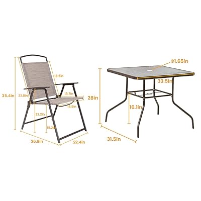 Ratings, based on 5 reviews. 33.8l x 33.8w x 27.5hproduct weight: The mainstays albany lane outdoor patio 5 piece dining set, black frame and black sling, 4 person seating is very traditional folding set, included 4 pieces sling folding chairs, and 1 glass table. The mainstays albany lane outdoor patio 6 piece dining set, black frame and black sling, 4 person seating is very traditional folding set, included 4 pieces sling folding chairs and 1 glass table. This set can be excellent on your patio, lanai, porches, garden, yard.