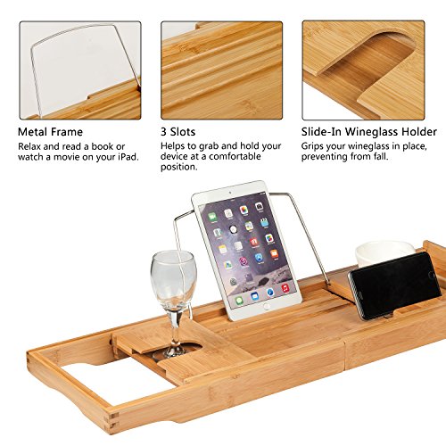 Can be placed on the bathtub for holding items, like ipads, tablet, books, wine, and food can be placed on it for convenient reach. It has room for everything especially my wine. Ipegtop 304 stainless steel bathtub caddy tray. 1.5'' h x 8.8'' w x 29.3'' d; Save $3.43 (15%) sale $19.46. Bamboo bathtub caddy tray, wooden bath tray with extending sides, reading rack, tablet holder, cellphone tray, wine glass slot condition new quantity 1 2 3 limit 3 per customer Cheviot products deluxe solid brass bathtub caddy, chrome by cheviot products. 4.7 out of 5 stars. It made my bathtub look like a spa. It's useful to have removable racks in case you don't need them at times. Sold by sunficon and ships from amazon fulfillment. Item 2 bamboo wood luxury bathtub caddy tray expandable w phone tablet. Each pc in pp bag,10pcs in a brown export ctn moq: