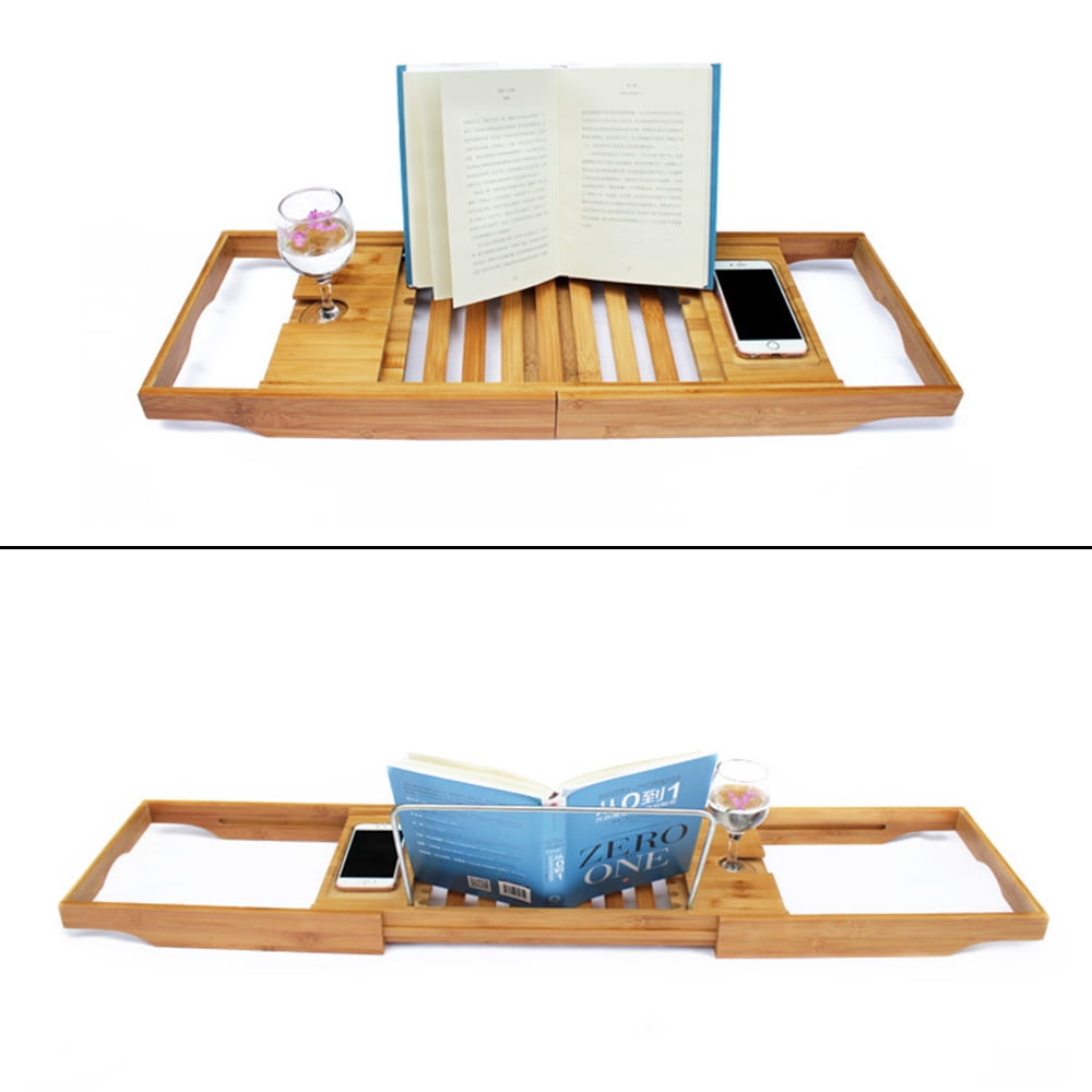 Bamboo Bathtub Tray Caddy Wooden Bath Tray Table with ... from i5.walmartimages.com The deluxe bathtub caddy uses solid brass construction to ensure sturdiness, as well as, resistance to corrosion and oxidization. On this caddy is a reading rack to place books, a wine glass holder and slots on either side to store other spa accessories. Bamboo bathtub caddy tray wooden bath tray with extending arms, reading rack, tablet holder, cellphone tray and wine glass holder. It has room for everything especially my wine. 5 out of 5 stars. 4.7 out of 5 stars. It has removable and adjustable holders that can hold your tablet,magazine,or book. Item 2 bamboo wood luxury bathtub caddy tray expandable w phone tablet.
